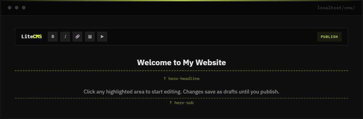 Drop EditlyCMS into any existing HTML site and start editing content directly on the page. No database. No complex setup. No monthly SaaS fees.
